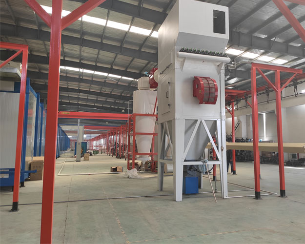實施靜電噴塑時,關于此涂裝生產線上應注意被涂物件的裝掛。必須會預先通過試浸來設計掛具以及物件在涂裝生產線上的裝掛方式,保證工件在浸涂時候處于最佳位置。被涂物的最大平面應接近垂直,其他平面與水平呈10-40角,使余漆的涂裝面上能夠較流暢地流盡。